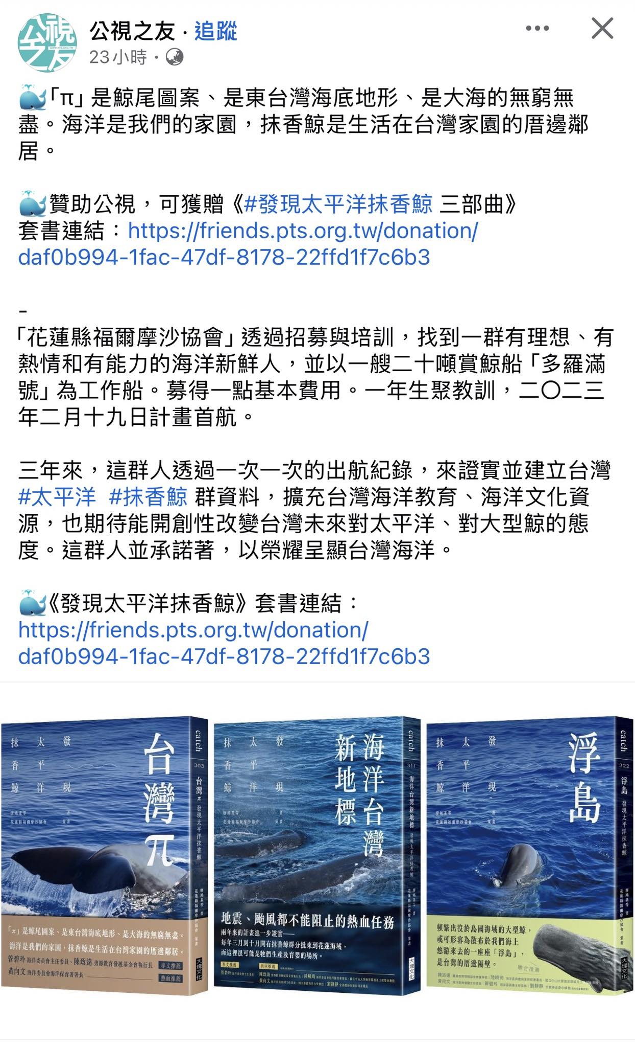 支持公視, 可以獲得《發現太平洋抹香鯨》三部曲套書